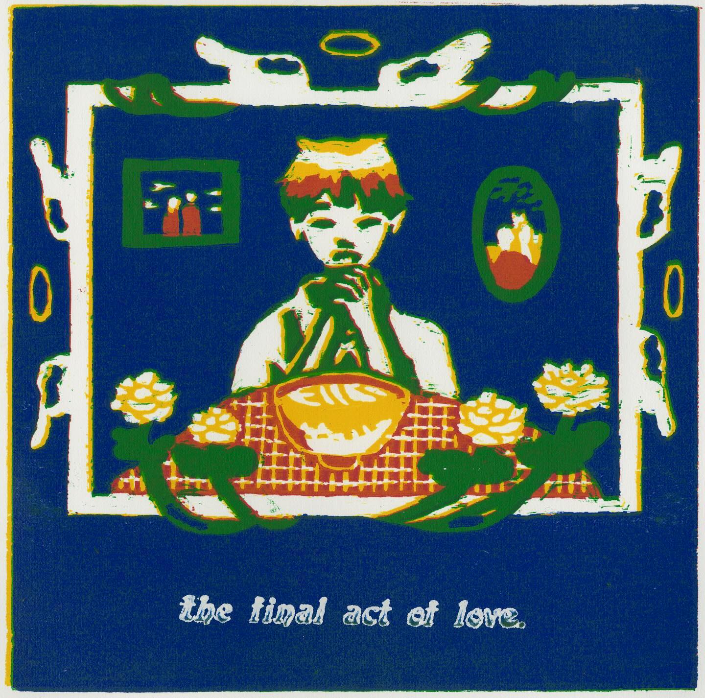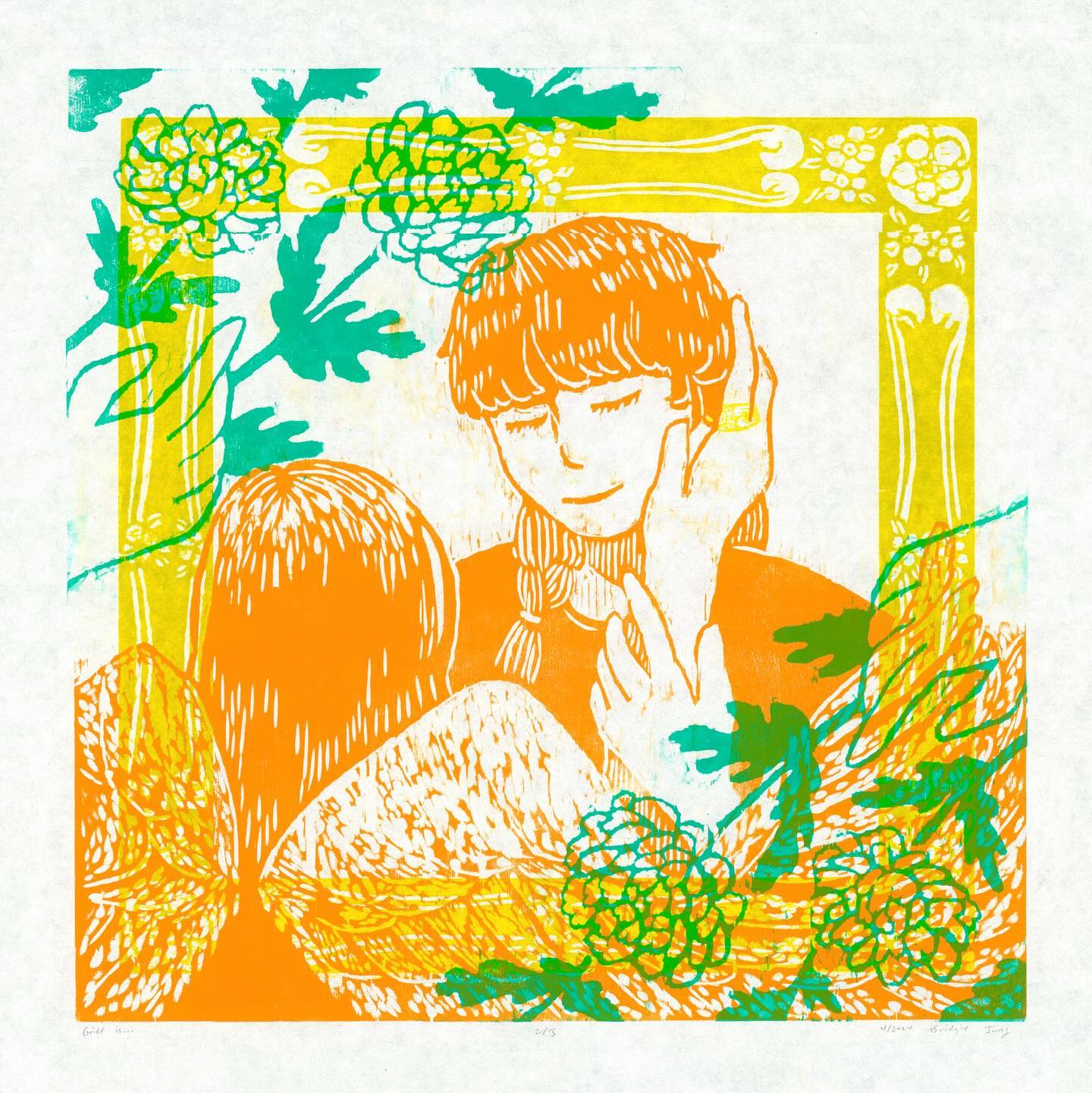 Risograph printing, link-stitch and stab binding, vellum, Japanese embroidery thread, Japanese book cloth, binder's board, mohawk paperweight.