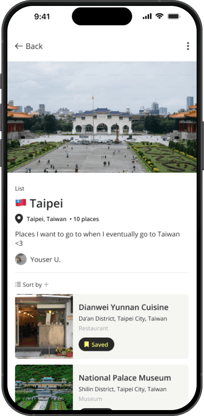 Users can add personal memos for each place they add to a list, sharing their personal experiences and memories with others.